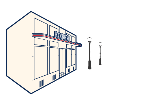 Tukaj je Hood Burger doživel rahli “facelifting”, kar pomeni, da smo nadgraili dizajn in ambient. Lokal še vedno ohranja prvotni videz kontejnerskega kioska, vendar z elementi, ki nas vračajo nazaj na ameriške diner restavracije, ki so nastajale v 70h letih prejšnjega stoletja.